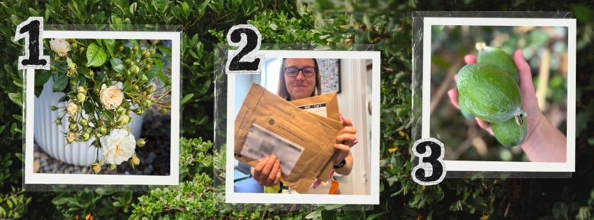 Second year of fruit on our feijoa trees — last year I counted 12 in total for our 1st year. This year I’ve already lost count.